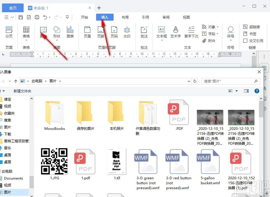 6、点击插入并选择插入图片,可以将本地文件的图片插入到文档中