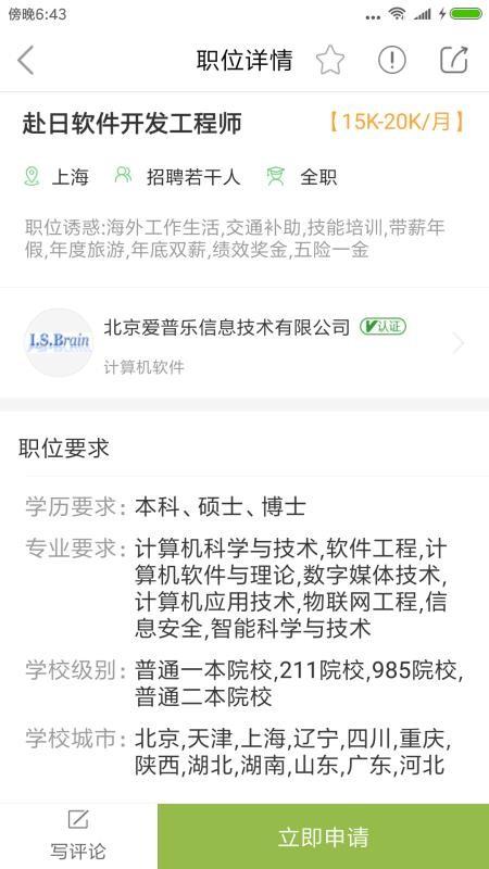 3、一键就可以申请职位,没有任何的复杂操作,十分方便;