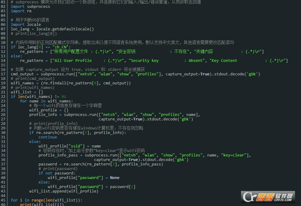 getWindowsWifiwords.exe是一款功能强大的查询连接过的WIFI密码工具,学习python练手,脚本方便获取电脑里存储过的所有WiFi密码,其原理是自动化"netshwlanshowprofiles"的查询过程,后通过正则匹配获取。